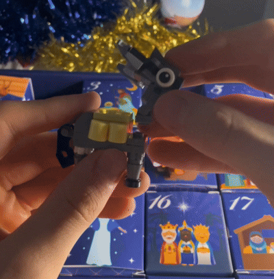 Compré este calendario de bloques para mis primos pequeños y es una divertida variante de la idea de la cuenta atrás. Cada cajita esconde una figura o pieza que se une a las demás para formar la escena de la historia. El factor sorpresa mantiene el interés y los bloques encajan bien al construirlos. Por ahora les esta encantando.